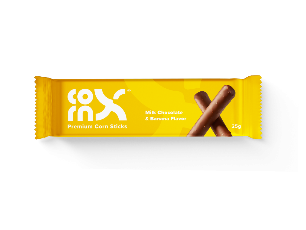 Křupka v mléčné cukrářské polevě s příchutí banánu a mléčné čokolády.