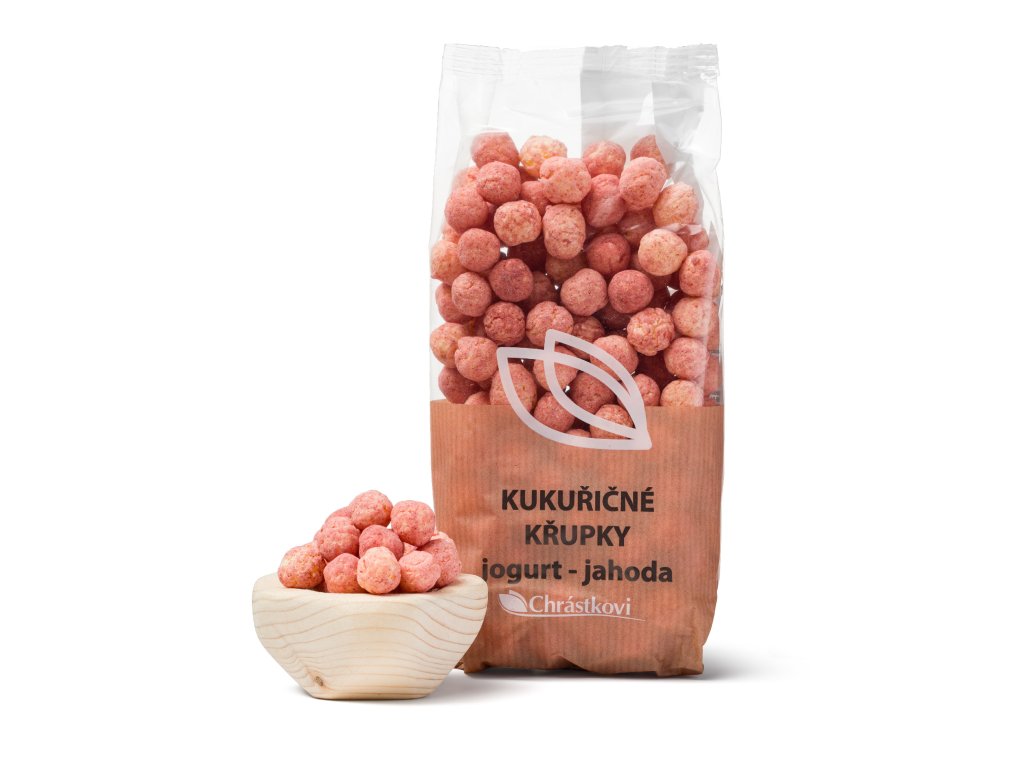 Kukuřičné křupky jogurt - jahoda kombinují křupavou strukturu kukuřice s lahodnou příchutí jogurtu a svěží jahody. Tyto bezlepkové křupky jsou perfektní svačinou pro děti i dospělé, kteří hledají zdravé mlsání plné chuti. Díky svému přirozenému složení jsou vhodné na každodenní konzumaci, ať už doma, na výletě nebo jako lehká svačina do školy. Objevte bezlepkové pochoutky s nádechem jahod a vychutnejte si jedinečnou kombinaci ovocné svěžesti a křupavosti.